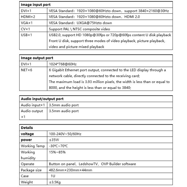 Bộ điều khiển video OVP-L3X là thiết bị xử lý video từ trung cấp đến cao cấp do công ty chúng tôi phát triển và sản xuất dành cho màn hình LED màn hình lớn, hiệu suất và cho thuê, phòng hội nghị, studio và các thị trường khác. Sản phẩm này áp dụng công nghệ xử lý hình ảnh 4K được thiết kế đặc biệt cho màn hình hiển thị LED nhỏ. Nó có thể nhận ra đầu vào và đầu ra điểm-điểm cho màn hình lớn LED có độ phân giải cực cao, do đó, nó có thể loại bỏ hiệu quả hiện tượng răng cưa cạnh do phóng to hình ảnh và giảm chất lượng hình ảnh. Mờ ngoài vùng lấy nét sau khi phóng to.