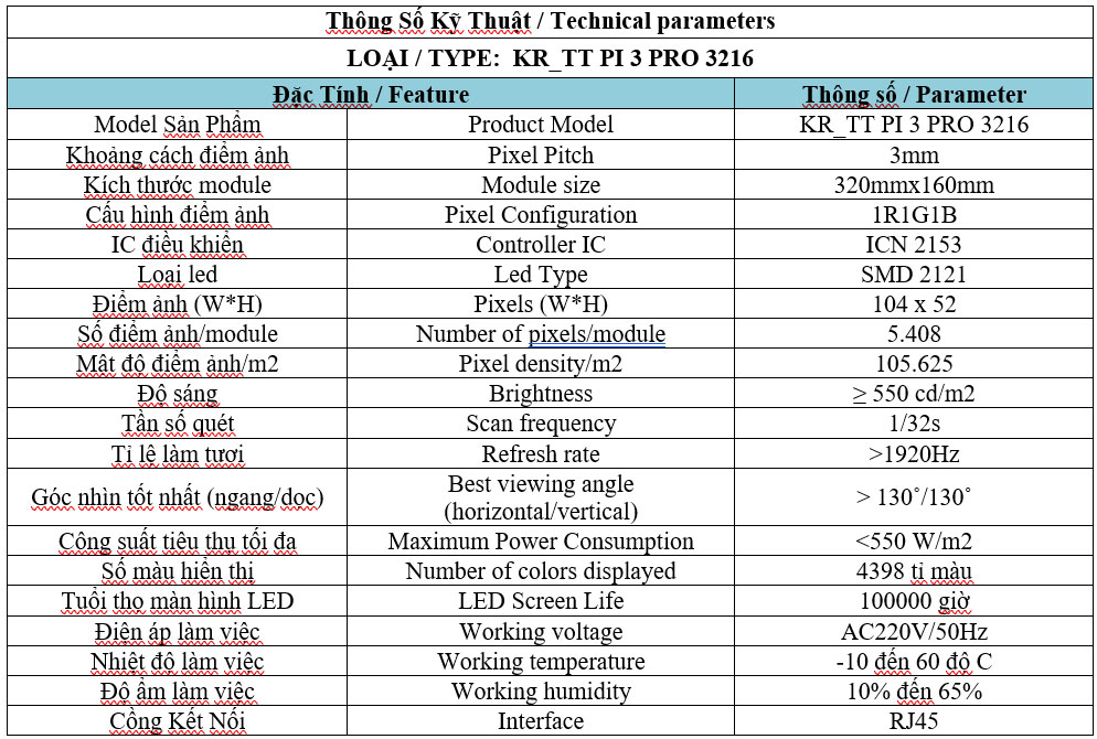 Trong xu thế công nghệ hiện đại, màn hình LED đã trở thành một phần thiết yếu của các thiết bị điện tử thông minh. Với những ưu điểm về độ sáng, độ tương phản, tuổi thọ và khả năng tiết kiệm năng lượng, màn hình LED đang dần thay thế hoàn toàn công nghệ màn hình truyền thống. Trong số các sản phẩm màn hình LED chất lượng cao, module KR_TT PI 3 PRO 3216 của hãng Kirin được đánh giá là một trong những sản phẩm tiêu biểu.