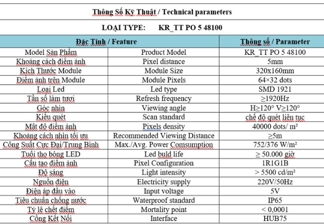 Chúng tôi vinh dự được là đối tác phân phối độc quyền tại Việt Nam của thương hiệu Kirin – nhà sản xuất module màn hình LED hàng đầu. Module LED KR_TT PO 5 48100 mà VHD phân phối là sản phẩm chính hãng của Kirin, cam kết chất lượng tốt nhất và mức giá cạnh tranh nhất.