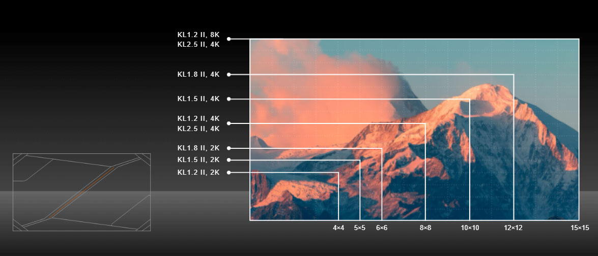 Sê-ri KL II áp dụng tỷ lệ khung hình 16:9 để tăng cường sự thoải mái khi xem. n^2 tấm nền có thể được ghép thành màn hình 16:9 để nhanh chóng đạt được màn hình 2K, 4K hoặc thậm chí 8K. Được phân phối dưới dạng panel lắp sẵn nên chất lượng sản phẩm được đảm bảo hơn.