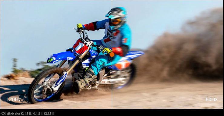 Hỗ trợ chế độ HFR+ (tốc độ khung hình cao 120Hz)*, hiển thị mượt mà nội dung tốc độ cao, thay đổi nhanh và tăng cường độ trôi chảy của hình ảnh, khiến nó đặc biệt thích hợp để phát các hình ảnh chuyển động và hình ảnh 3D tốc độ cao.