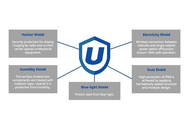 - Uppanel II cung cấp kết nối không dây giữa các tủ giúp giảm tỷ lệ hỏng hóc và tăng tuổi thọ của màn hình.